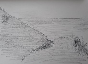 Concentrating more upon the colours present within the sea, I painted another study on the same size canvas. By using these smaller canvases I was able to create a whole representation of my view quickly.