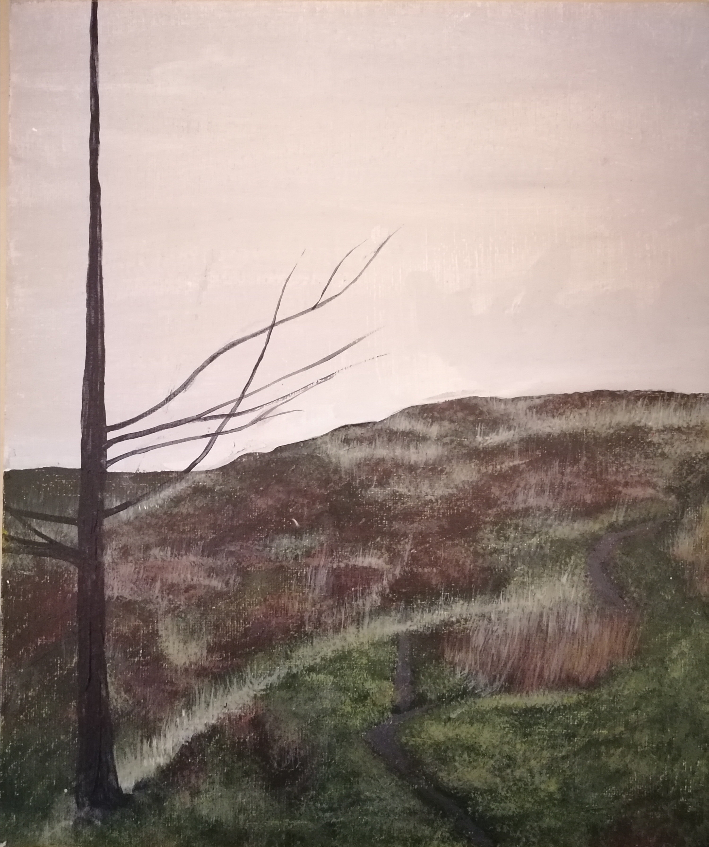 For this painting, I took some reference from my sources, however, I decided to step out of my comfort zone and focus on presenting a painting which evoked a deeper sense of emotion through my colour palette. I have also chosen to select aspects of the landscape I wish to include (e.g. one side of the tree’s branches), in order to emphasise the atmosphere I wish to convey. For me, this painting represents my own journey to Aberystwyth, of which I felt compelled to take before I came to University,