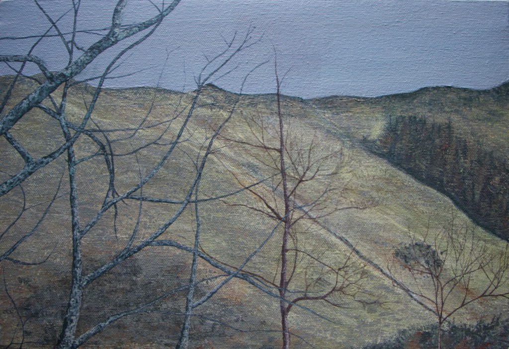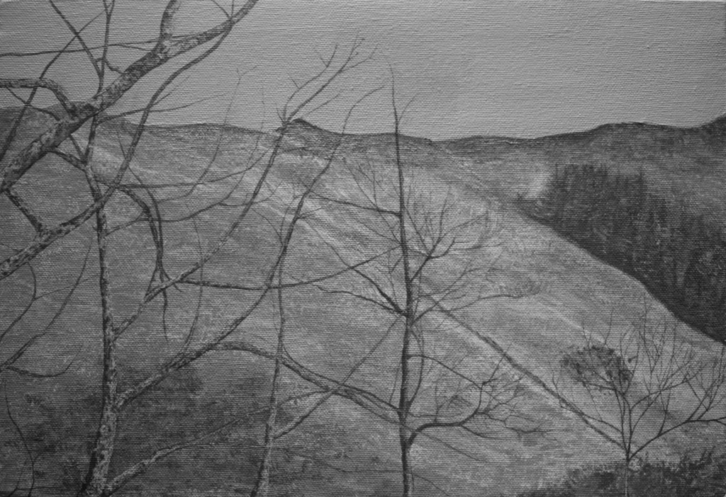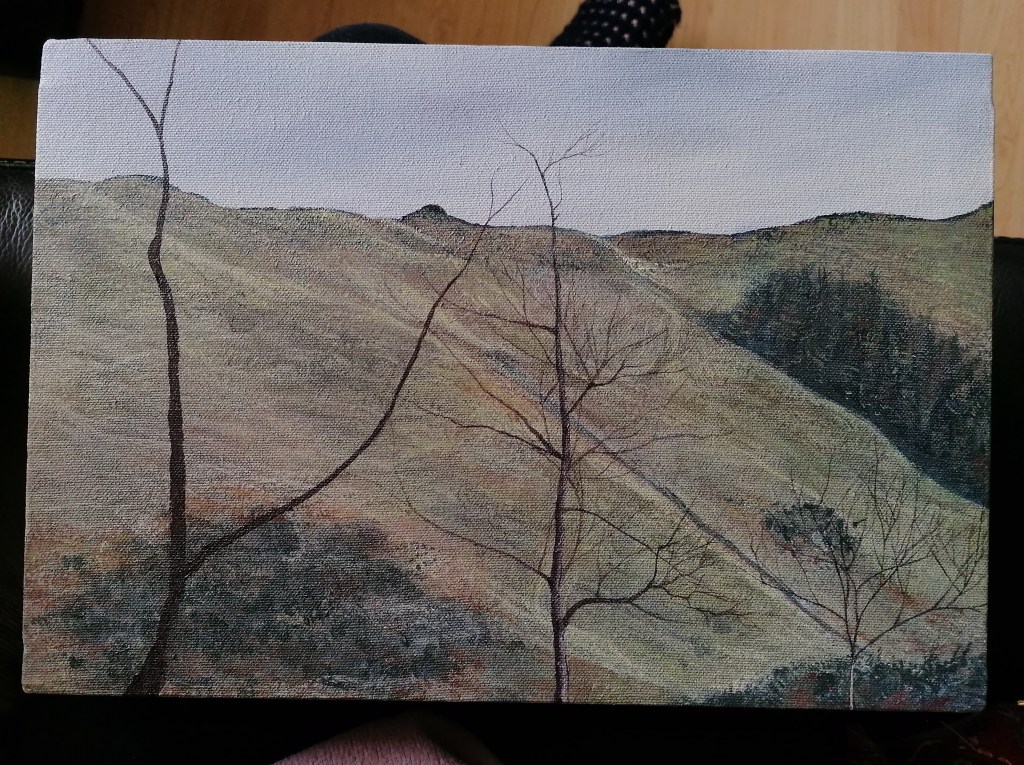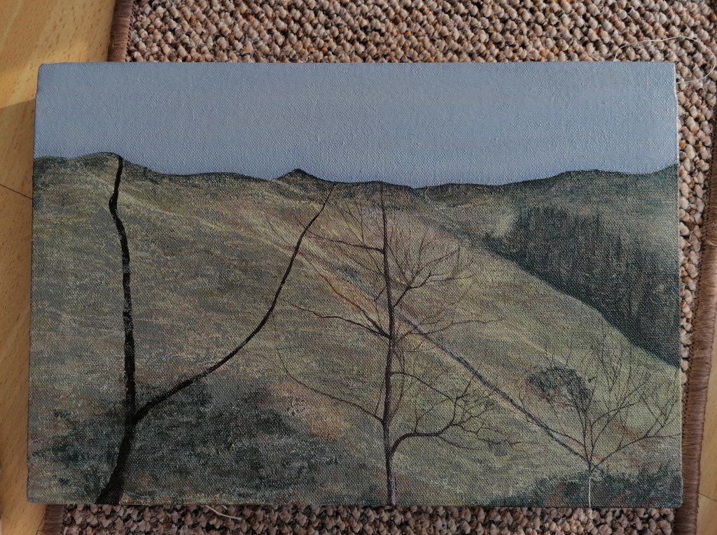 Within this painting, I wanted to present the way the trees within the landscape dissect the composition, creating irregular shapes, which seem to enhance the overall effect of the scene.