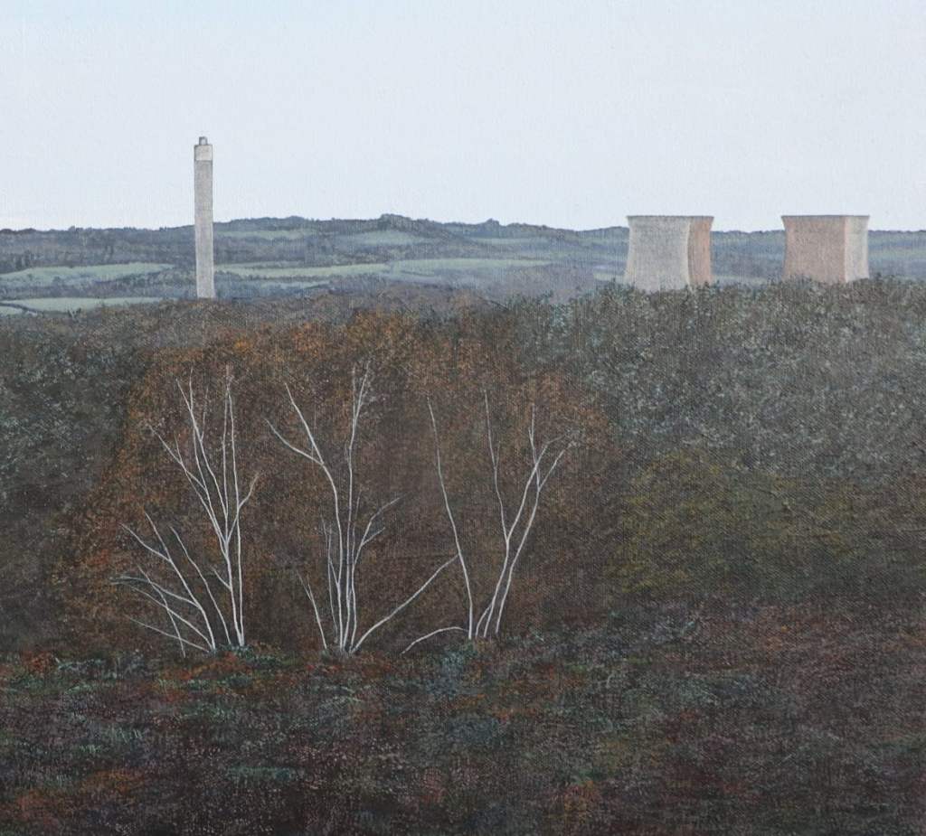 Another view which is disrupted by man-made structures, has recently been altered. The painting “Expired View” was inspired by a view of Rugeley power station, from Cannock Chase, which has long been due for demolition. Since this painting was created, the main chimney has been demolished, and later on this year the cooling towers will also have been erased from this view. The site of the power station will eventually be transformed into a residential area, which of course will be concealed by the trees of the Chase. Built in 1964, the demolition of the power station will restore the former view of the natural Landscape.
