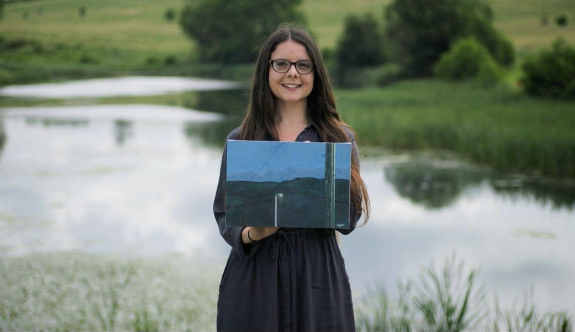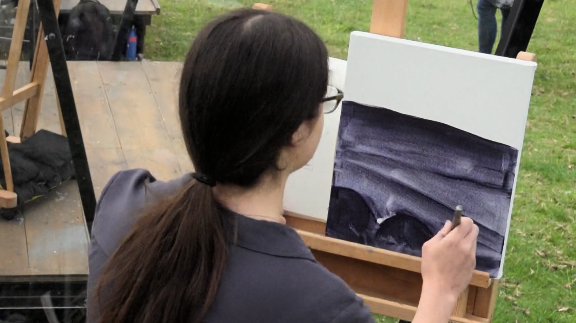 I was chosen to be a contestant on the show after submitting my acrylic painting My View at Twilight. This painting was created as part of my BA degree show series, at Aberystwyth University. The composition depicts the view from my student residence in Aberystwyth. The significance of my time as a student at Aberystwyth is marked by the influence the Welsh landscape has had on my artistic practice. Before studying here, my work was not landscape-based, and it was only after a project named “On Location” that I decided to focus upon this subject. To possess an appreciation of my surroundings has always been important to me, however this subject had never really made an appearance within my practice, until I became an undergraduate student, in Wales.