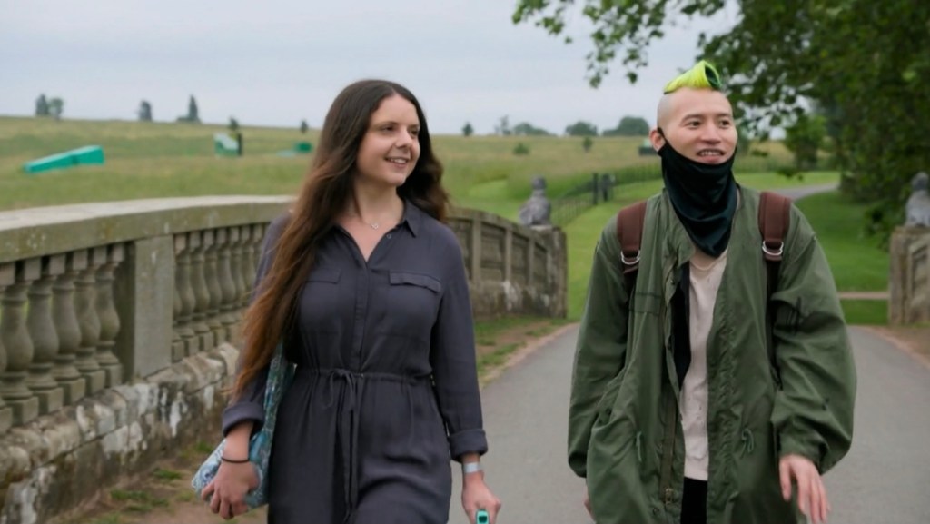 At the start of our day, myself and each of the seven other contestants made our way over Compton Verney’s impressive bridges, towards our studios for the day: the pods! I was instantly drawn to the striking placement of the bridges within the landscape and knew, very quickly, that they would inform my choice of composition. The image above is of Quango (also a contestant) and myself. In this photo we were filming an intro for the programme, and had just been instructed to walk back over the bridge to re-take this scene: in the first take we had been in conversation regarding how we were feeling about the day ahead and Quango’s use of expletives, to describe his nervousness, were reportedly capable of being lipread- the camera man wasn’t happy!