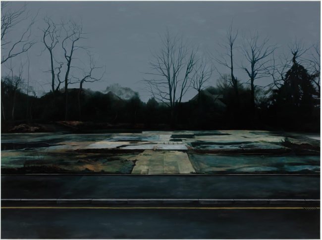 The work of the Pre-Raphaelites, who were likewise influenced by Romanticism, have captured my interest over the last few years. Keen to depict scenes which expressed a “truth to nature”, I follow suit in my rendition of the expanding estate, Field in the New Estate. A “moody” atmosphere, expressed by the dark depiction of the sky, is almost contradicted by the bright snow in the foreground. By ensuring that both the top and bottom half of the canvas were portrayed in detail, the scene describes the inevitable expansion of the site into its natural surroundings.