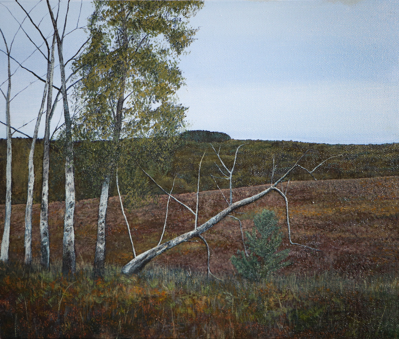 Autumnal Inspiration, 2020, acrylic on canvas, 35x34cmMisty Chase, 2022, oil on canvas, 39x43cmCommute, 2022, oil on canvas, 30x21cmReflection, 2022, oil on canvas, 64 x 78 cmHome is where the Tower is, 2020, acrylic on canvas, 35x24cmAugust Heathland, 2024, 35×24 cmExpired View, 2021, acrylic on canvas, 40x40cmNear Slitting Mill, 2021, oil on canvas, 31x31cmHeathland, 2022, oil on canvas, 39x 43 cmBrindley Heath, 2021, oil on canvas, 30x36cmSilver Birches in the Wind, 2020, acrylic on canvas, 24×35 cm
