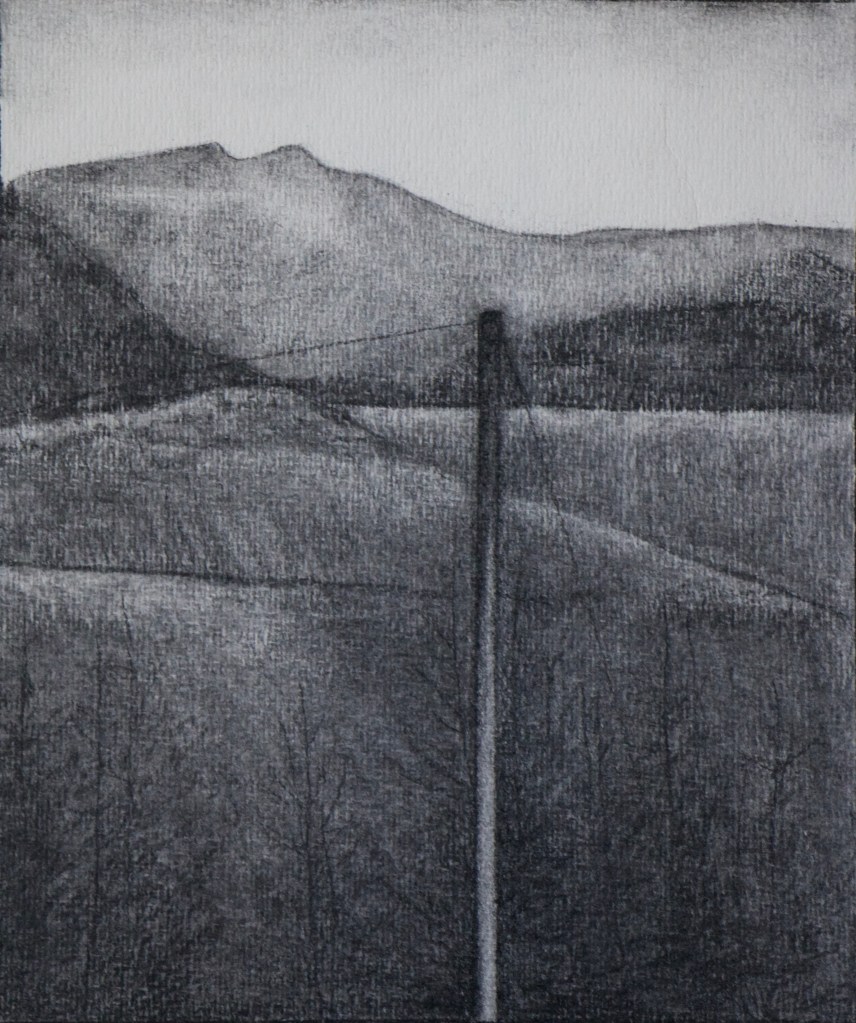 Looking North from Bwlch Nant Yr Arian, acrylic on canvas, 24x37cmLandscape, 2018, acrylic on canvas, 25×30 cmMountain Trail, charcoal on paper, 35.5 x 21.5 cmMountain Trail, acrylic on canvas, 35x31cmLooking South from Bwlch Nant Yr Arian, acrylic on canvas, 36x31cmWaiting for Spring, acrylic on canvas, 35×24 cmSpring on the Horizon, charcoal on paper, 26 x 21.5 cmSpring on the Horizon, 2020,acrylic on canvas, 35x31cmCrossroads, charcoal on paper, 26 x 28 cmCrossroads, acrylic on canvas, 31×35 cmBwlch Nant Yr Arian Landscape, acrylic on canvas, 31×35 cmTree study at Bwlch Nant Yr Arian, acrylic on canvas, 24×35 cmBlue Trail, charcoal on paper, 19.5 x 30 cmThe Blue Trail, acrylic on canvas, 35×56 cmSnow in the Distance, charcoal on paper, 22 x 29 cmSnow in the Distance, acrylic on canvas, 35 x31 cmLooking West from Bwlch Nant Yr Arian, acrylic on canvas, 30.5x40cm